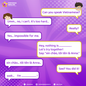 Trong bài này, PoPoDoo sẽ chỉ bạn cách để biến KHÔNG THỂ thành CÓ THỂ. Hãy hoàn thành đoạn hội thoại bên cạnh, để xem bạn có biến “không thể” thành “có thể” không nhé.