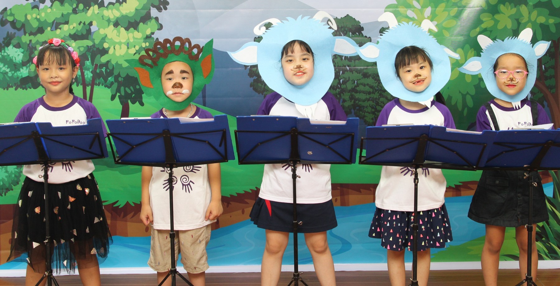 Con khám phá kể chuyện, hội hoạ, ca hát, nhập vai và thể hiện ý tưởng bằng tiếng Anh cơ bản.