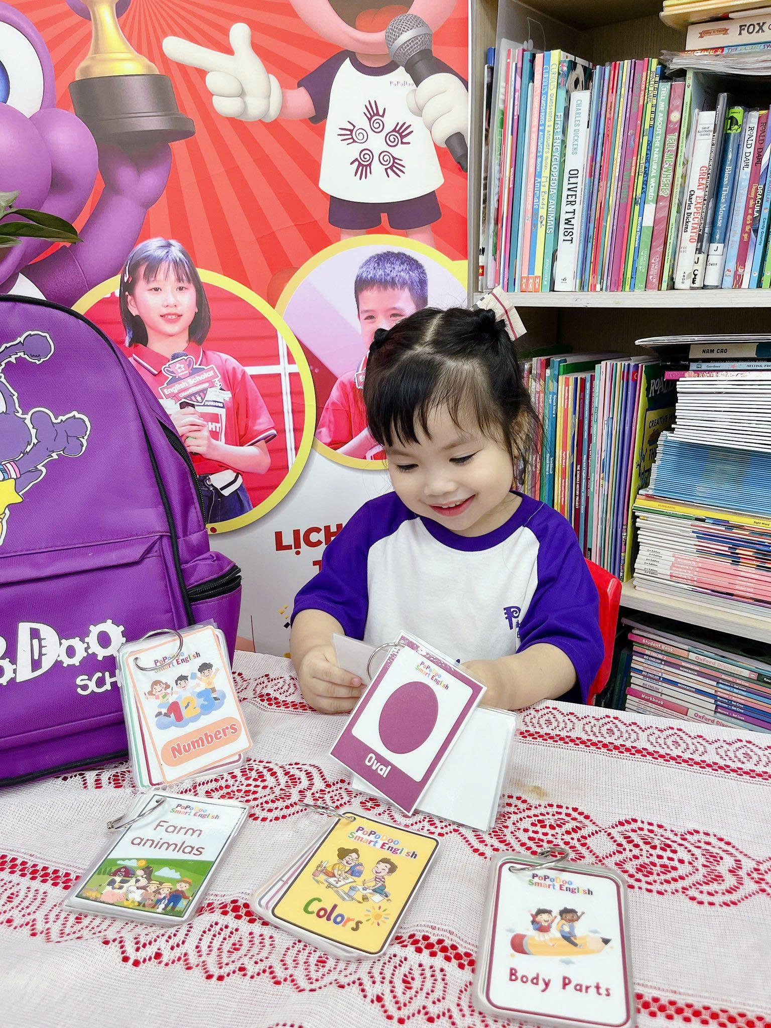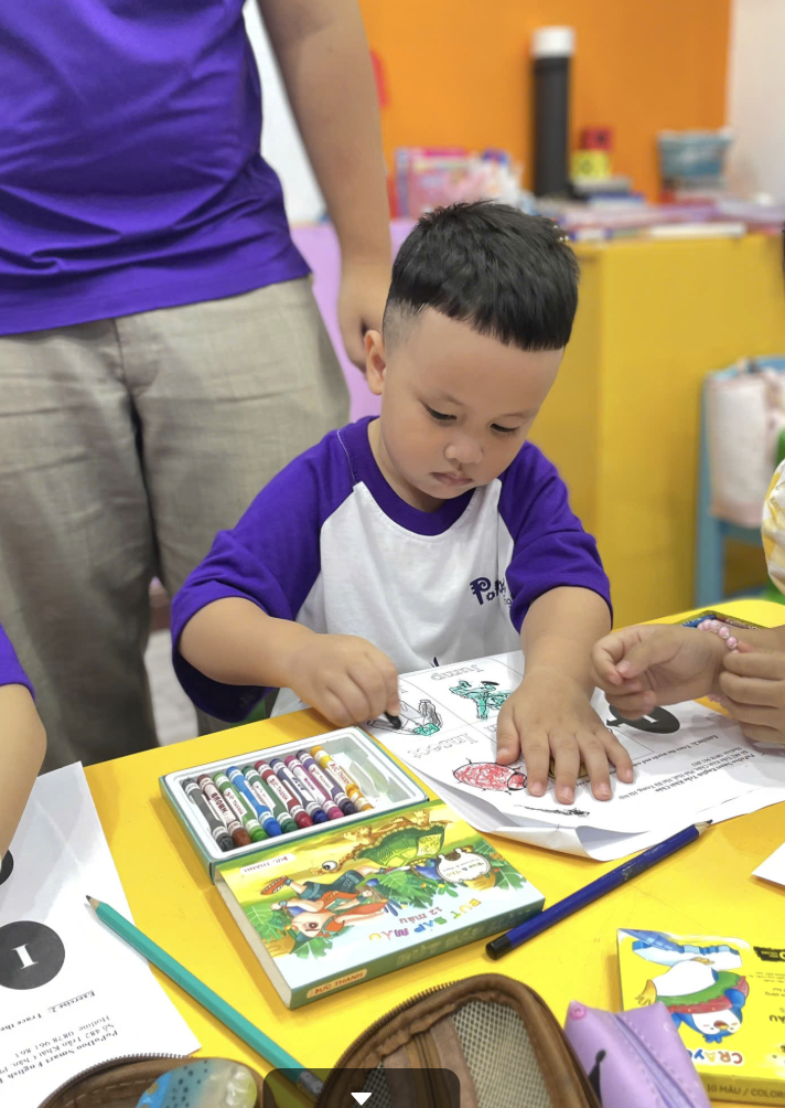 Các bài học rèn luyện trí nhớ, sự tập trung và tư duy logic cho trẻ. Các con dần biết liên kết ý tưởng, lựa chọn đơn giản và phản xạ với các tình huống quen thuộc bằng tiếng Anh.