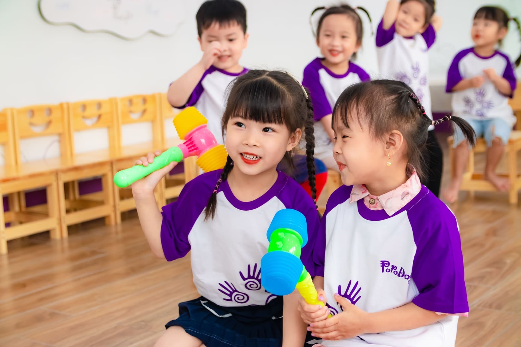 Con học cách chia sẻ, hợp tác và thể hiện cảm xúc. Hình thành sự đồng cảm, tự tin và khả năng thích ứng trong tập thể.
