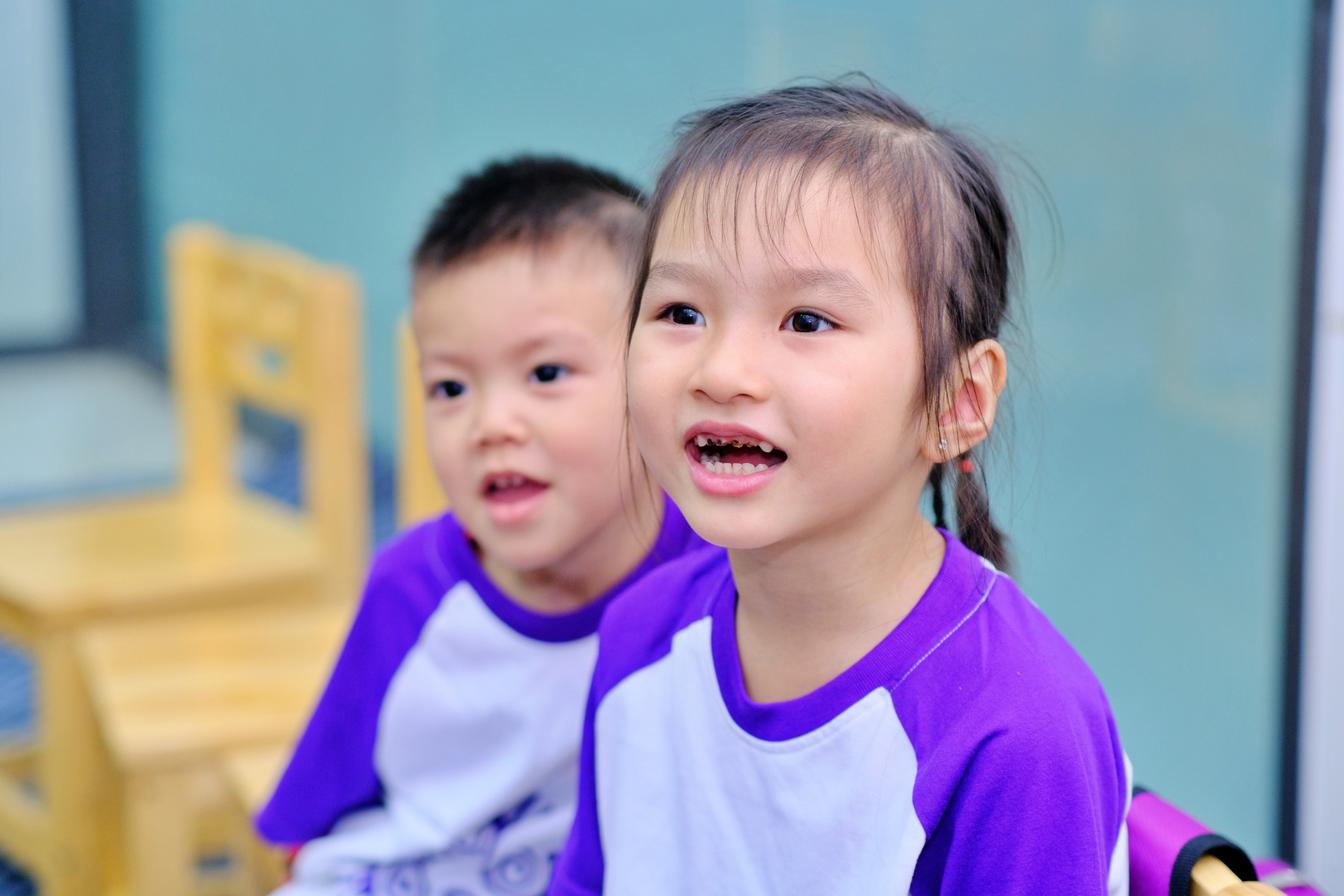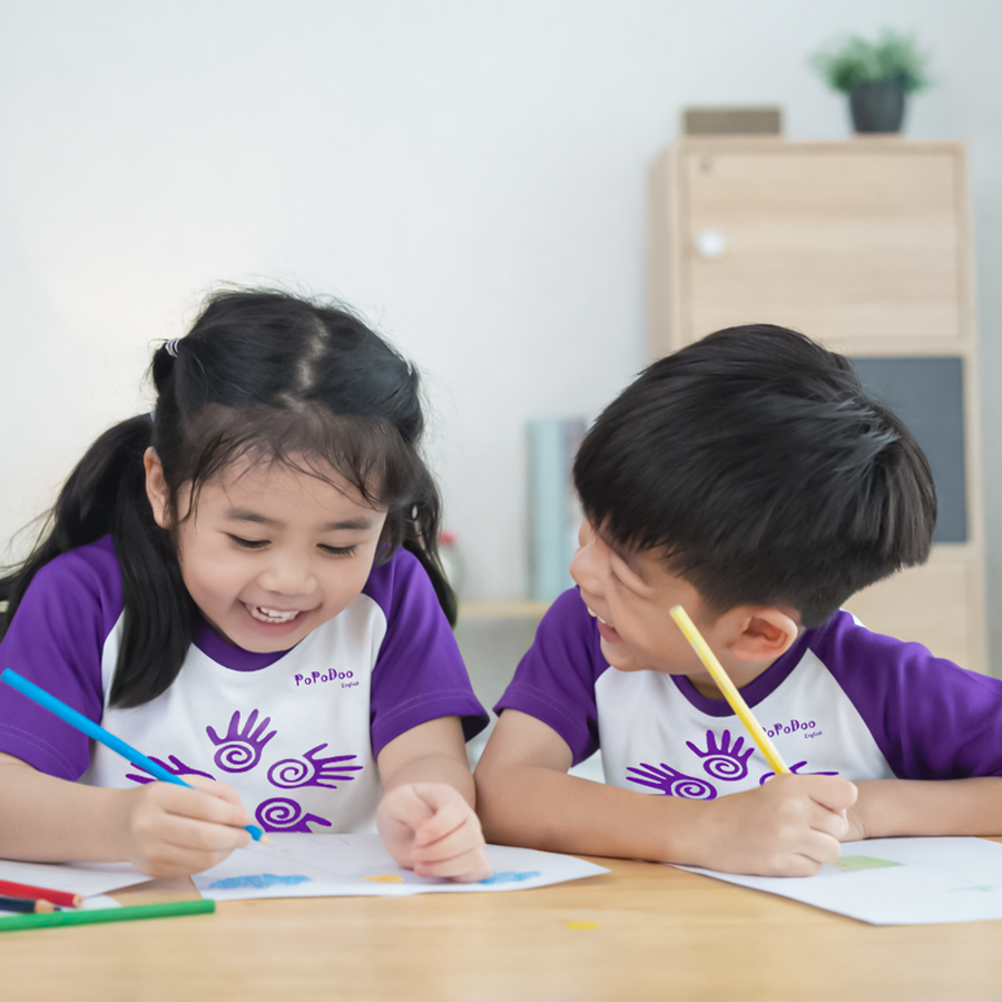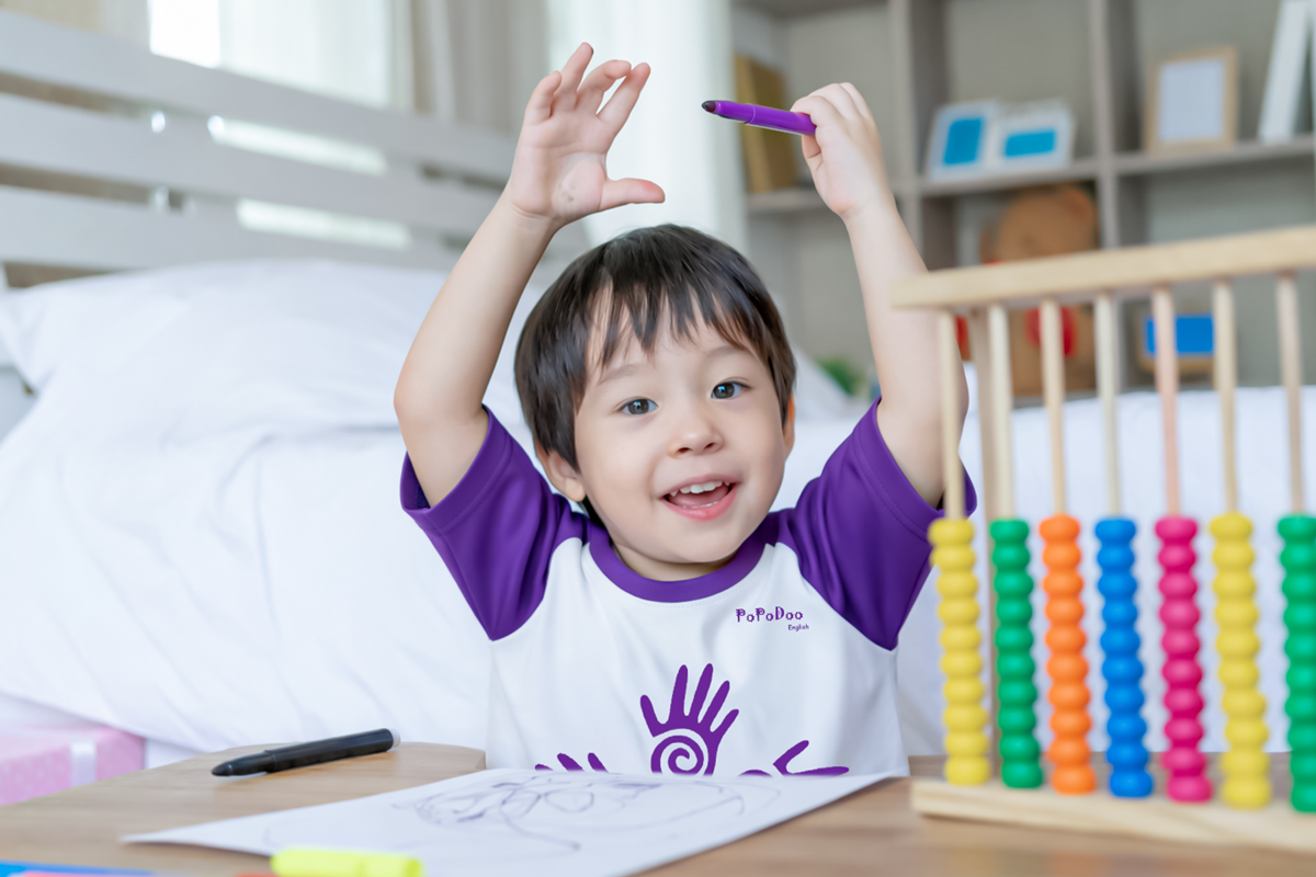 Con hình thành khả năng phát âm tự nhiên, với vốn từ vựng khoảng 720 – 900 từ cùng các mẫu câu cơ bản. Con nghe, hiểu tốt và tham gia giao tiếp đơn giản một cách tự tin.